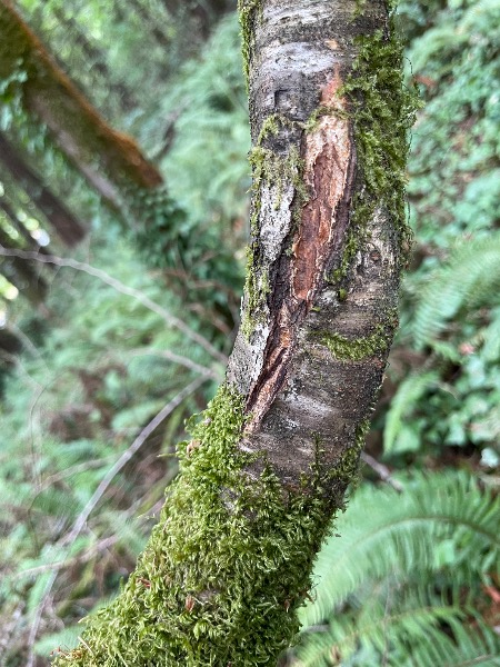 Leaves in upper canopy dry and leaves curling up. Open wound about 5ft up trunk. No D shape holes