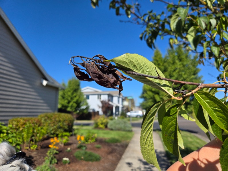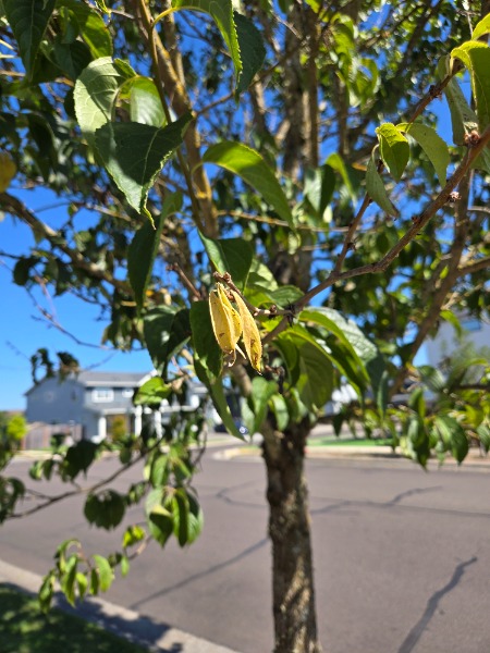 Thank you for your report! This looks like a cherry tree. EAB only attacks ash trees and some related trees in the ash family. The twig dieback on this tree looks like a fungal infection (brown rot?), not an insect problem. Consult the PNW pest management handbook for treatment options.