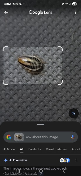 three-lined cockroach (Luridiblatta trivitatta) on Sep 21, 2025