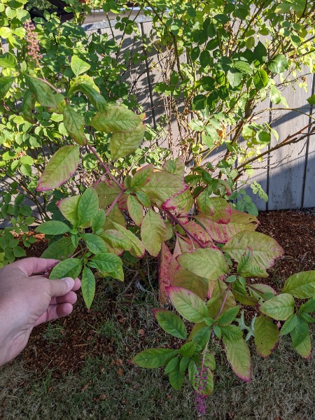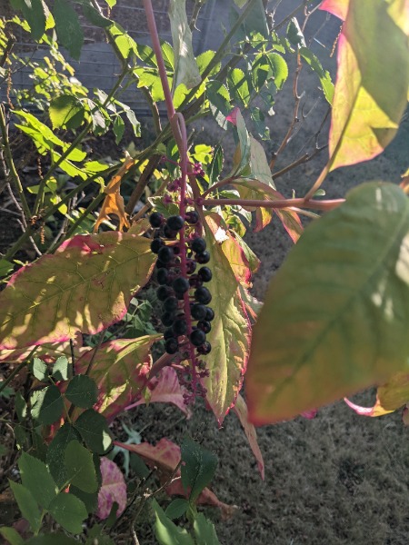It has the large berry clusters, is about 5 ft tall, large leaves, a perennial. See example pictures
