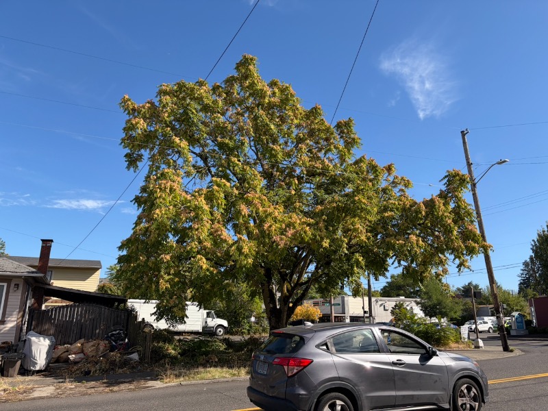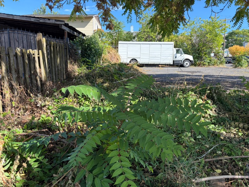 The whole lot here is overgrown with Tree of Heaven, including a huge mature one about to drop a crazy amount of seedlings. Adjacent properties are also infested, the one just north on 15th badly.