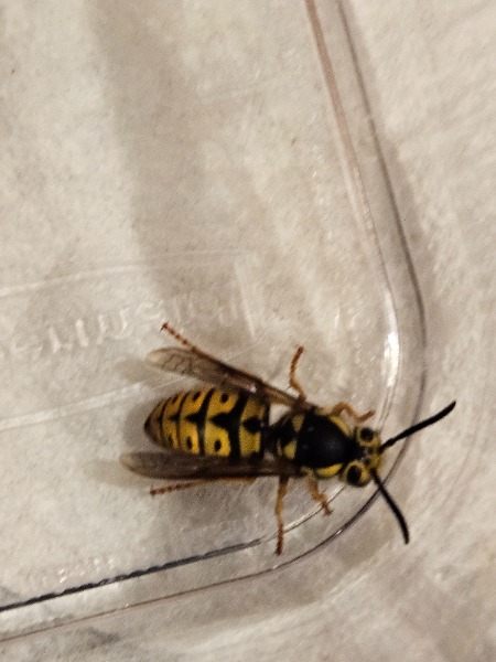 Some kind of hornet. Don't know if it is invasive. 8 was able to capture it alive.